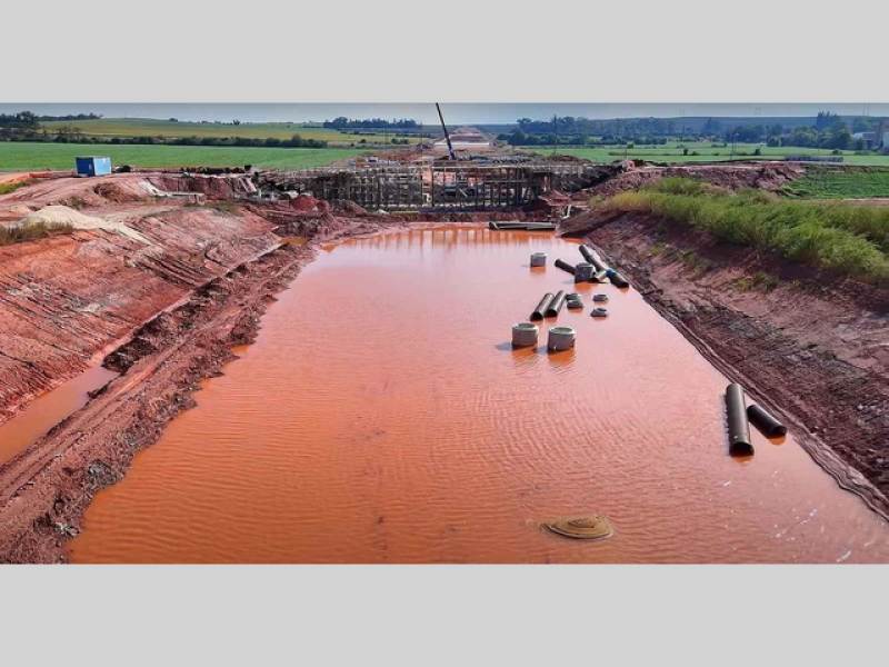 Laguna místo staveniště. Deště vytvořily jezero na budoucí dálnici D6