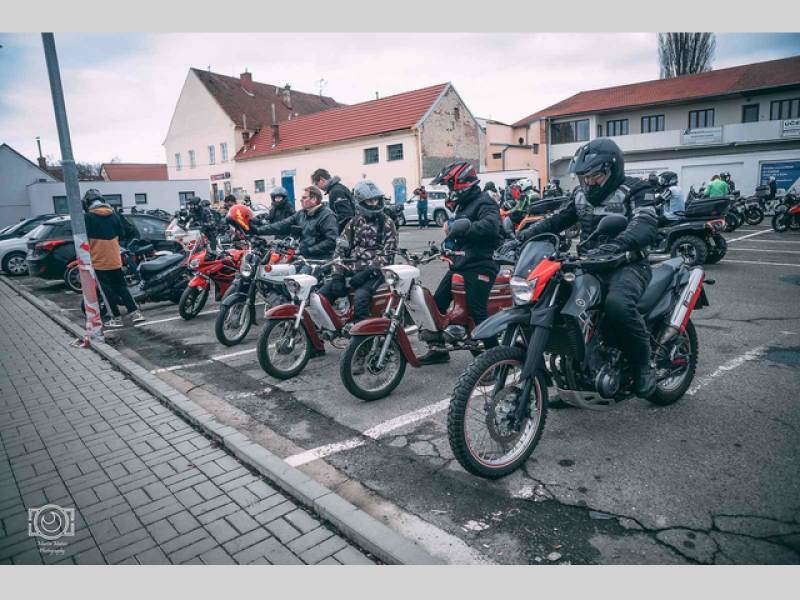 Motoklub Austerlitz pořádal tradiční vyjížďku na Štědrý den ve Slavkově u Brna. Stroje nejprve zastavily na náměstí, kde si je mohli všichni prohlédnout do nejmenšího detailu.
