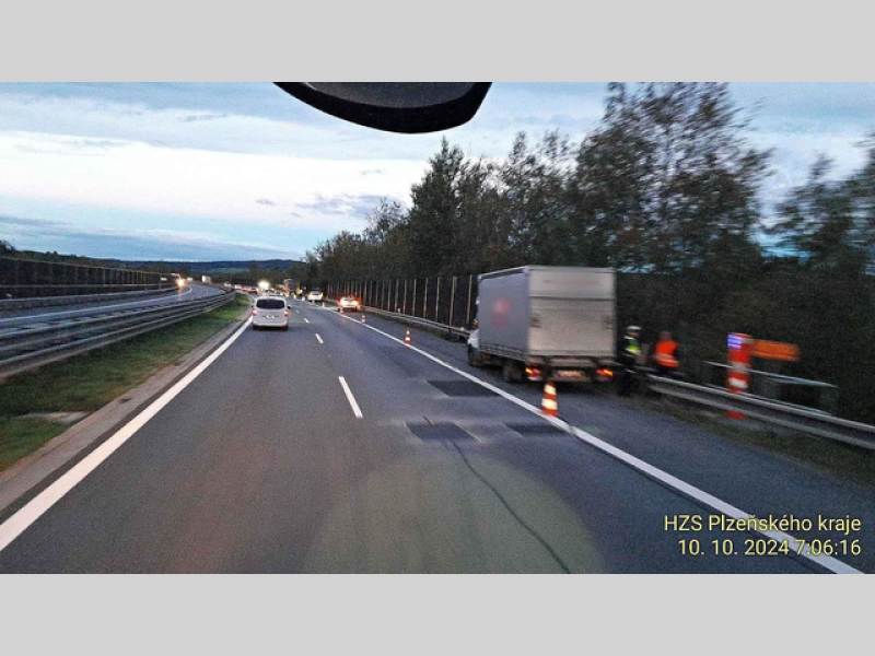 Pneumatika spadlá z těžkotonážního auta způsobila na dálnici D5 velkou hromadnou nehodu. Za sjezdem na Kařez a Cerhovice se kvůli jí srazilo sedm nákladních a osm osobních aut. Série nárazů se obešla bez zranění a přivolaní hasiči uklízeli pozůstatky střetů i únik provozních kapalin z poškozených aut.