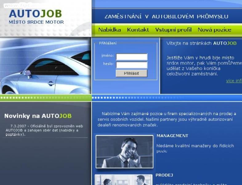 Společnost Autojob s.r.o. spustila na internetové adrese www.autojob.cz nový portál s pestrou nabídkou pracovních pozic v automobilovém odvětví. Webová aplikace se vyznačuje snadnou orientací v nabídce volných pracovních míst a možností vložení profilu uchazeče o zaměstnání. Zaměstnavatelé mohou inzerovat neozený počet inzerátů s uvedením termínu zahájení pracovního poměru. Celý proces je jednoduchý. Vše začíná zaevidováním firmy do systému a vložením neomezeného počtu nabídek. Popis pozic je stručný a při opakovaném vkládání není třeba zapisovat stejné údaje. Firmy mají možnost vybírat z profilů uchazečů o práci.