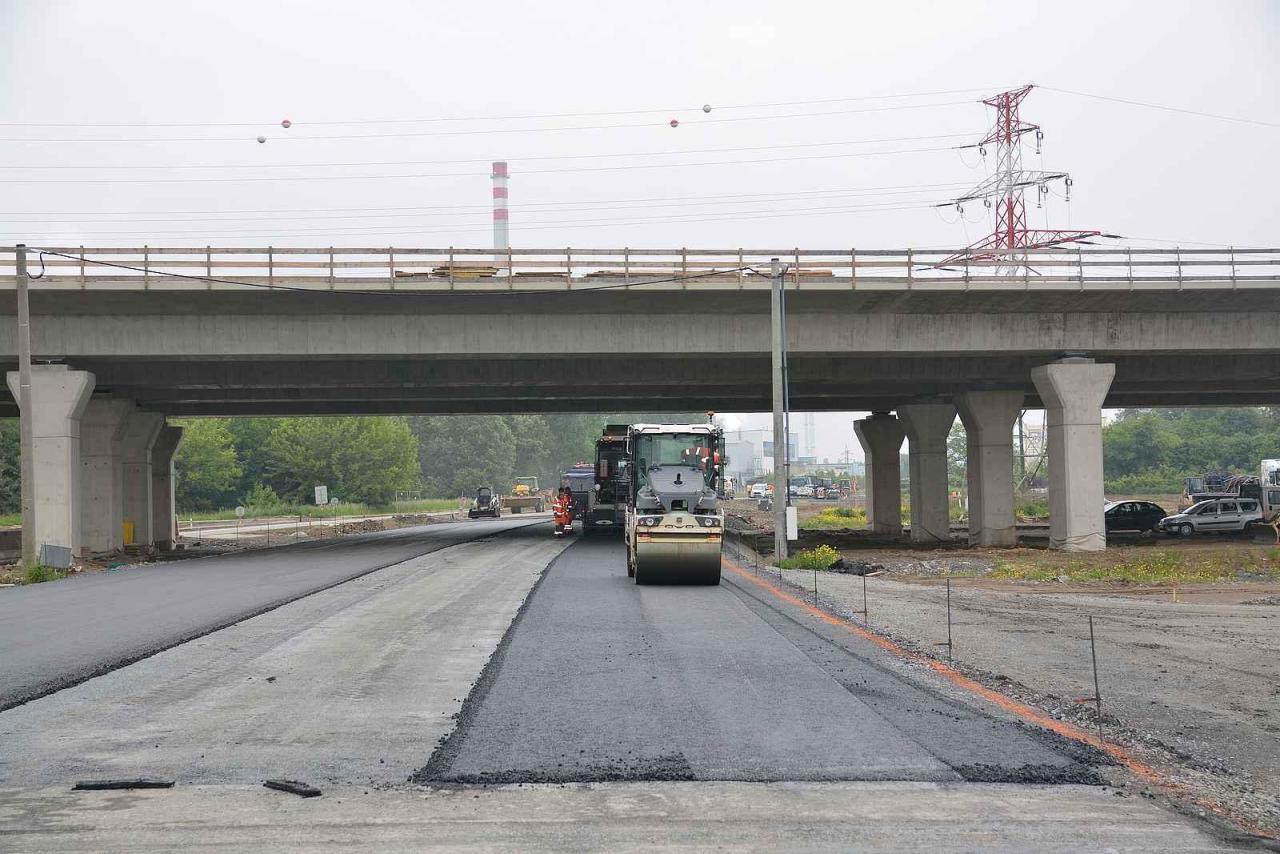 V současné době probíhá pokládka kameniva zpevněného cementem, co je vrstva, která se dává pod betonovou vozovku. Od června začne pokládka vozovky po celém úseku. V Tovačovské ulici momentálně probíhá asfaltování - silnice se přeloila do jiné polohy kvůli tomu, aby to ířkově i výkově navazovalo na dálnici. Tovačovská ulice půjde v předstihu do provozu 16. června, a poté budou pokračovat práce na rampách a napojení na dálnici, přiblíil Petr Černík, ředitel stavby ze zhotovitelské firmy Strabag.