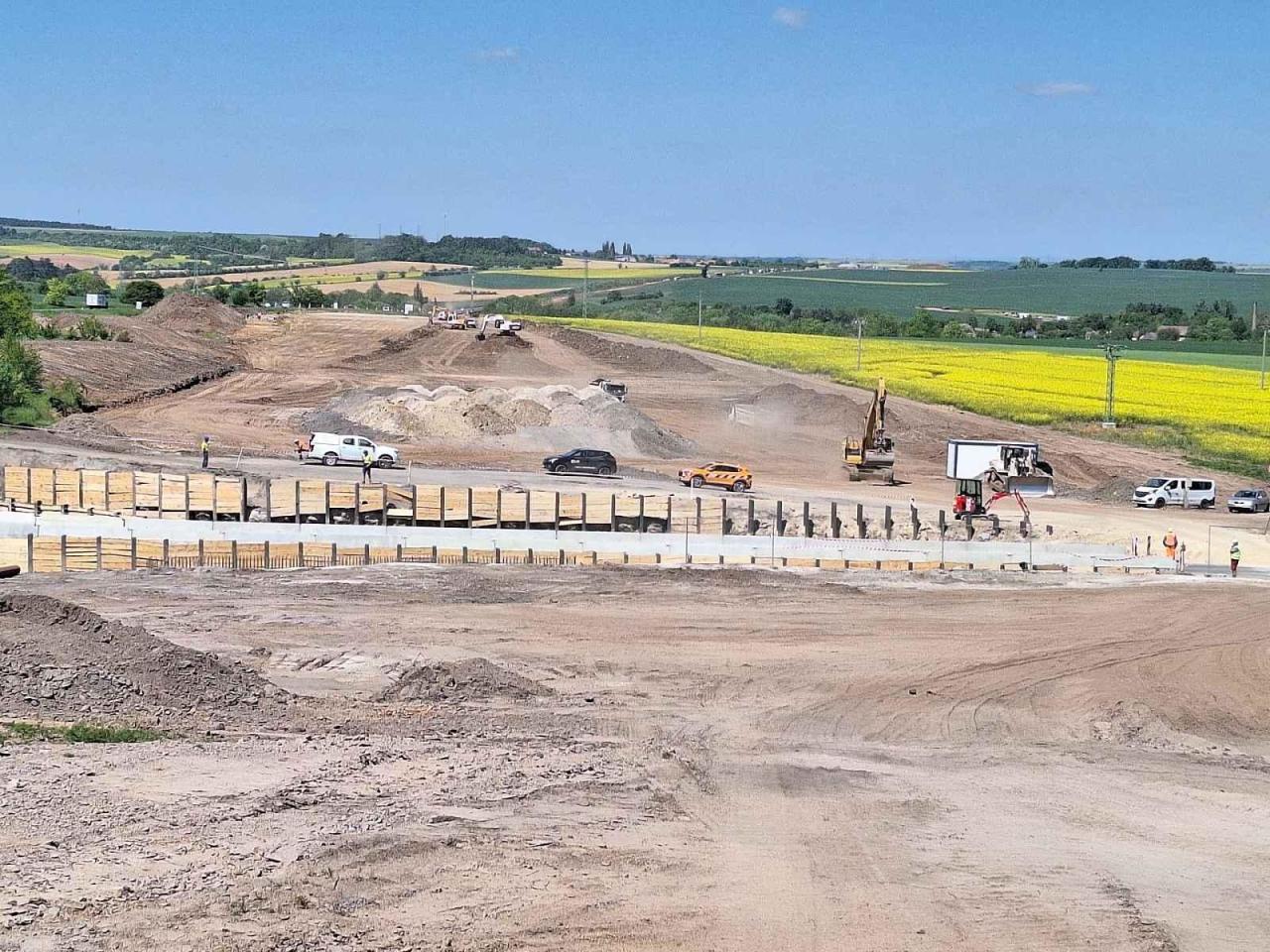 "V celé délce stavby probíhají nadále intenzivní zemní práce. Pracujeme nejen na přeložkách inženýrských sítí, ale i na skrývce ornice v místech, kudy přímo povede těleso dálnice s veškerým příslušenstvím. Největší posun je možné vidět na
