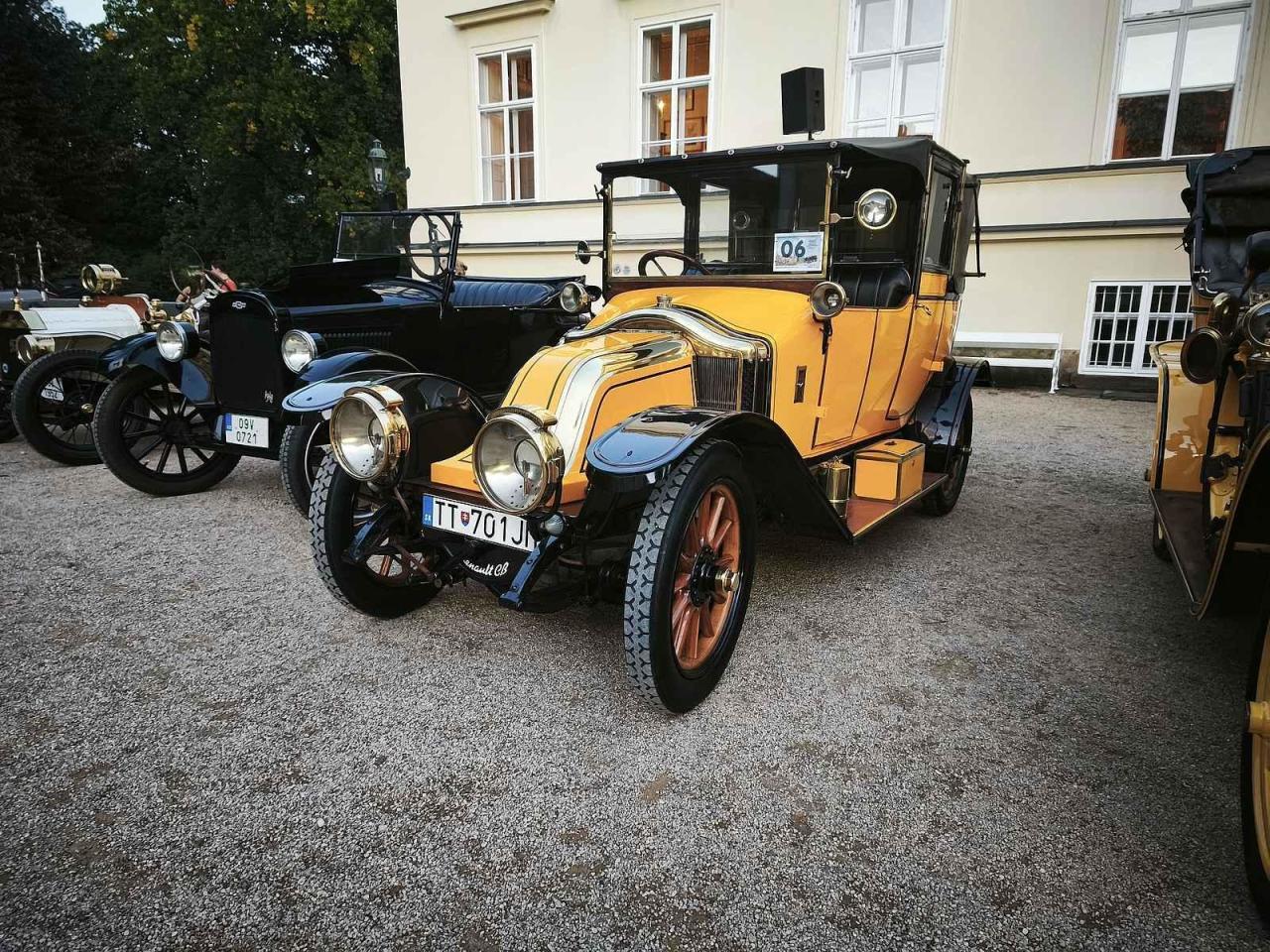 Na zámku se představila vozidla vyrobená převážně do roku 1919, výjimečně i mladší z počátků první republiky. „Nejstarším exponátem je motorový kočár Cottereau z roku 1898. Zajímavý je i francouzský vůz