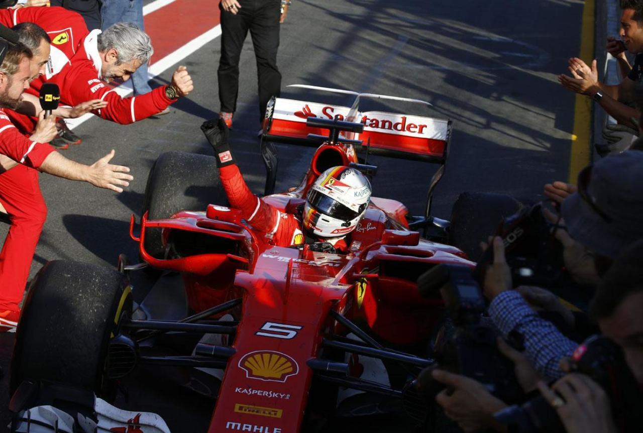 Fanoušci Ferrari se dočkali po dvou letech. Úvodní závod sezony F1 v australském Melbourne vyhrál Sebastian Vettel na Ferrari SF70-H. A to poměrně jednoduchou logikou: Vettel startoval druhý za Lewisem Hamilton z týmu Mercedes. Co se dělo dál, překvapilo jen ty, kteří nesledovali předsezonní přípravu v podání Ferrari. Vettel se Hamiltona držel jako klíště a Hamilton sám později přiznal, že mu nedokázal poodjet. Ba co hůř, oproti Vettelovi se Hamilton trápil jízdou na nejměkčí sadě pneumatik (fialová ultra-měkká). Jeho časy kolísaly, a tak musel v 17. kole do boxů pro zcela novou sadu jiné specifikace (žlutá měkká). Vettel převzal vedení a najížděl si náskok. Hlavně také proto, že po výjezdu z boxů zůstal Hamilton s čerstvými pneumatikami ,zaseknutý‘ za Maxem Verstappenem z Red Bullu. Vettel vydržel na dráze o šest kol déle, vyjel si náskok přesně takový, který mu při návratu stačil těsně na to, aby Hamiltona předjel a dostal se do vedení závodu!