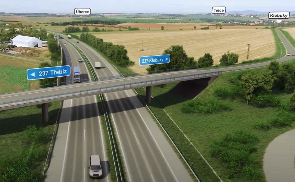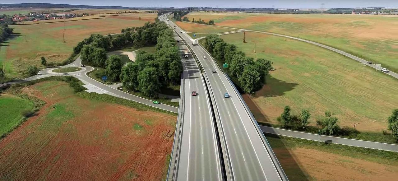 úsek u Chlumčan na Lounsku, který je od konce loňského roku z větší části v provozu. V letech 2026 až 2028 se má stavět poslední část celé dálnice, a to pět kilometrů u Postoloprt.