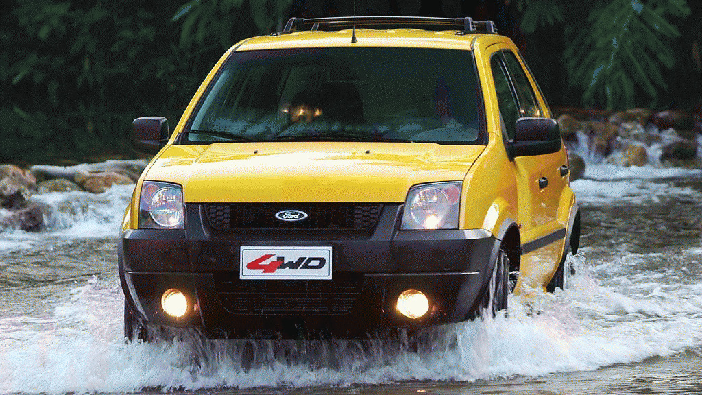 Hranatější tvary, možnost dokoupit boční prahy a rezerva umístěná na zadních do strany otvíraných dveřích byly typické znaky auta do terénu. Přesto si EcoSport dokázal Brazilce velmi rychle získat. Ford se totiž v době, kdy byl pohon všech kol pro SUV takřka povinností, nebál zariskovat a většinu kusů prodal s pohonem předních kol. To snížilo jeho cenu a logicky tak i dostupnost auta na trhu, který je na cenu vozu výrazně citlivější než jakýkoliv evropský trh.