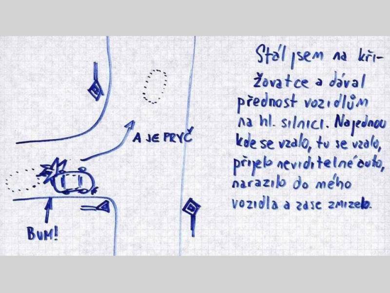 Nakreslit a dopodrobna popsat své pojišťovně, jak došlo k dopravní nehodě, nemusí být vždycky lehká záležitost. Existují však řidiči a řidičky, kteří se s touto povinností umí vypořádat velice hravě. A taky velmi vtipně.