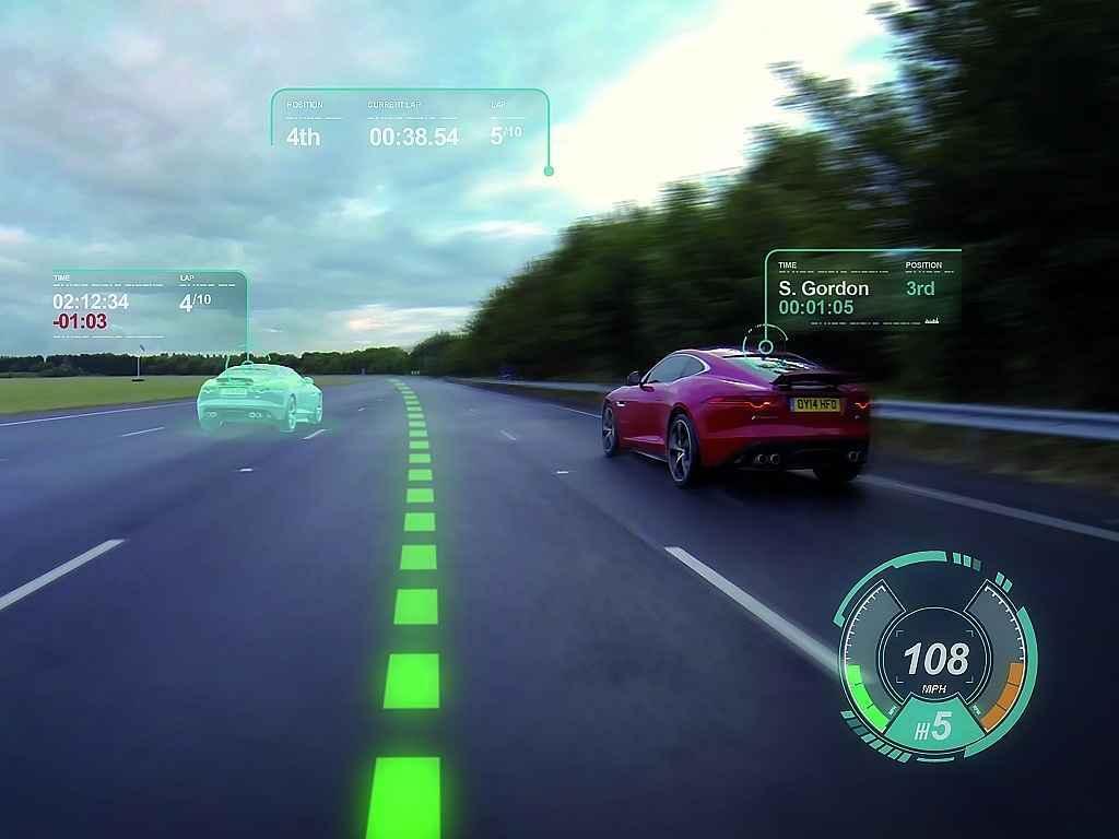 Součástí nového konceptu je také Jaguar Virtual Windscreen, 3D přístrojový panel a ovládání gesty. Jaguar Virtual Windscreen využívá celé čelní okno jako displej pro zobrazování různých informací. Umí například ukázat ideální stopu při jízdě na okruhu a dokonce i brzdnou zónu. Se sportovní jízdou souvisí možnost závodění "s duchem". Jde o věc známou například z počítačových her, kdy závodíte s "obrazem" vašeho vozu z minulého kola nebo proti rychlému kolu nahranému jiným jezdcem.