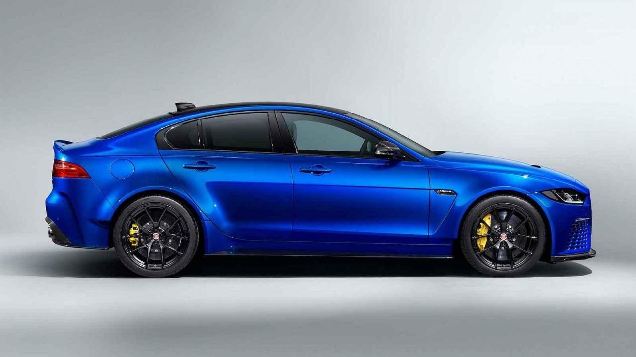 Teď se v Británii rozhodli, že tohle auto dostanou také na silnice. Vznikl proto nový model který se jmenuje XE SV Project 8 Touring. Jak je z prvích tří obrázků patrné, obří přítlačné křídlo už zmizelo. Vzadu je jen decentní „kachní ocas“. Auto se představilo v nápadném modrém laku, kterému sekundují žluté třmeny brzd.