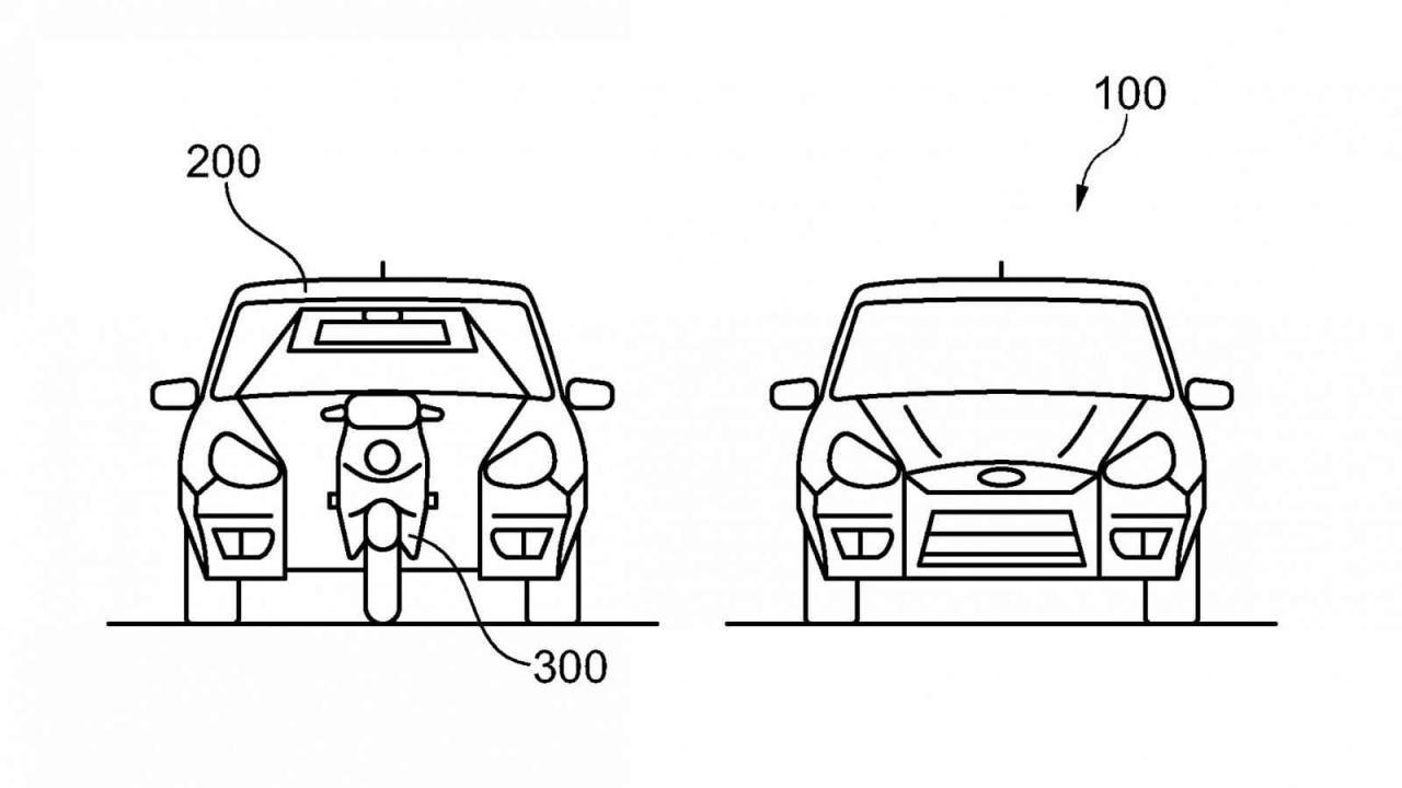 1) Elektrický skútr pod kapotouNa první pohled se jedná o klasický automobil typu MPV. Ovšem musí mít buď motor vzadu nebo elektromotory zabudované v kolech. Jen tak by totiž bylo možné, aby po otevření kapoty zprostředka přední části vozu mohl vyjet elektrický skútr.
