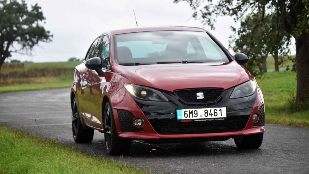 Jeden takový jsem si vypůjčil na test v Auto ESA. Jednalo se o vínově zbarvený exemplář Seatu Ibiza Cupra. Jistou exkluzivitu mu dodával zejména příplatkový paket Bocanegra (v překladu tento pojem znamená černá tvář). Poprvé byl vůz poháněný turbomotorem 1,4 s výkonem 180 koní uveden do provozu v roce 2010. Od té doby stihl najezdit 130 000 kilometrů a jeho cena poklesla z původních 550 000 na současných 218 000 Kč.