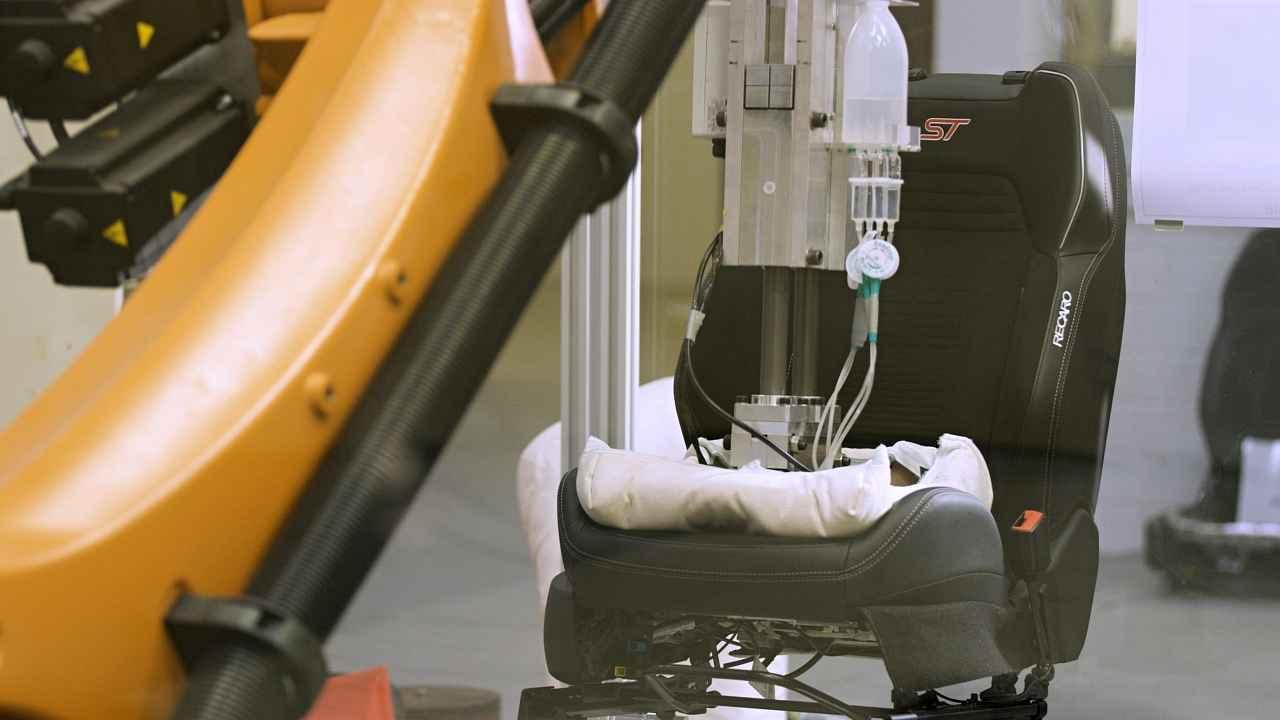 Než Ford zahájí komplexní test kvality, nejprve analyzuje, jak lidé nastupují a vystupují z aut. K tomu jsou na sedadlech umístěny tlakové rohože, které zaznamenávají podrobné informace. „Každý člověk vyvíjí na autosedačku jiný druh zatížení, a proto ve Fordu testujeme chování sedadel u lidí různých velikostí a postav,“ říká Svenja Fröhlich. Inženýři společnosti používají shromážděná data k vytvoření reprezentativního profilu pohybu, který pak naprogramují do robota společně s rozložením síly.