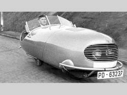 Práce na prvních prototypech stroje, odborněji nazvaného "kabinový a kapotovaný motocykl", se rozjely za doby druhé světové války, kdy měl v nacisty řízeném Protektorátu Čechy a Morava nadšený pilot zakázáno létat. V depresivní době okupace měl tedy dostatek volného času navrhnout něco nevídaného.