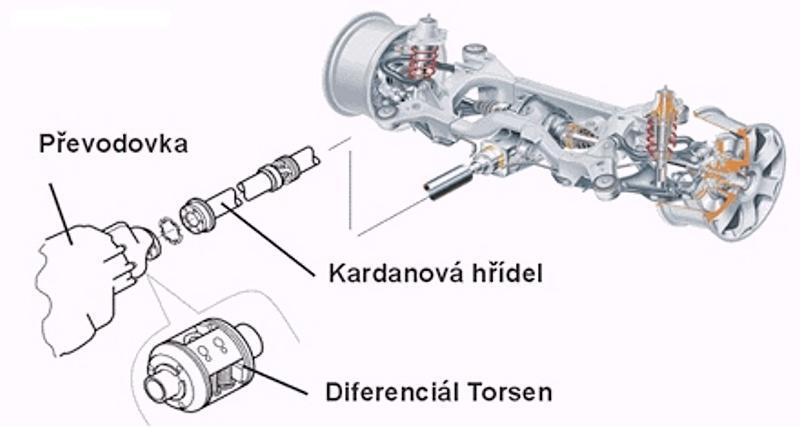 Samosvorný diferenciál Torsen v systému quattro od Audi.