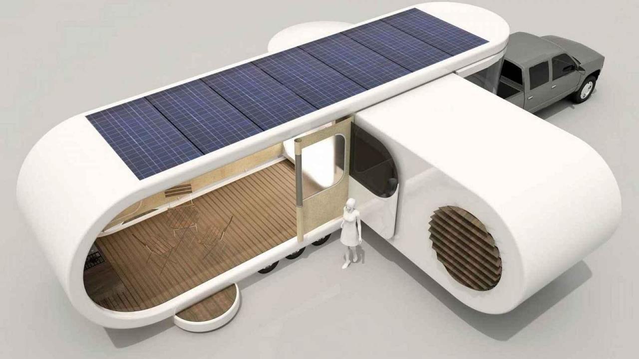 Jeho trumf se ale plně předvede až ve chvíli, kdy jej zaparkujete na kýžené místo. Stačí stisknout tlačítko a karavan se rozloží ve stylu USB klíčenky. Obytná část se totiž otočí o 90 stupňů a rázem tak vznikne nový prostor s terasou, kde lze rozložit sezení. Terasu lze zároveň zakrýt z boku plachtou proti větru. Karavan nabízí celkem 29 metrů čtverečních obytného prostoru.