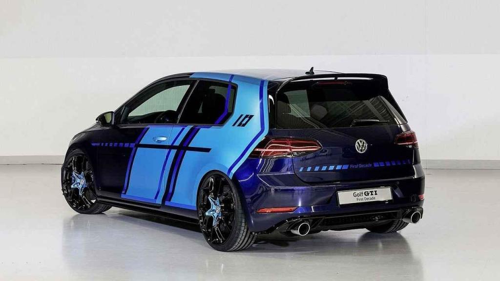 Upravený Golf GTI v první řadě upoutává pozornost speciální barevnou kombinací, unikátními litými koly v černé barvě s modrými středy a například také zadním křídlem z modelu GTI Clubsport.