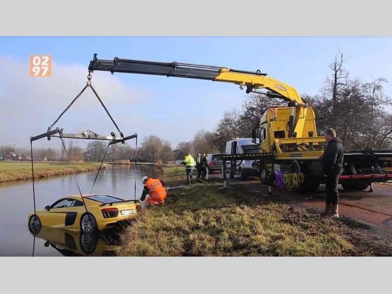 Vodní život v řece mezi městečky Abcoude a Loenersloot zažil návštěvu neobvyklého průzkumníka. Jasné žlutá ponorka v podobě nejnovějšího Audi R8 V10 plus tam skončila na dně hned poté, co německý řidič neodhadl své řidičské schopnosti a v supersportu o výkonu 610 koní (449 kW) byl už pouhým pasažérem.