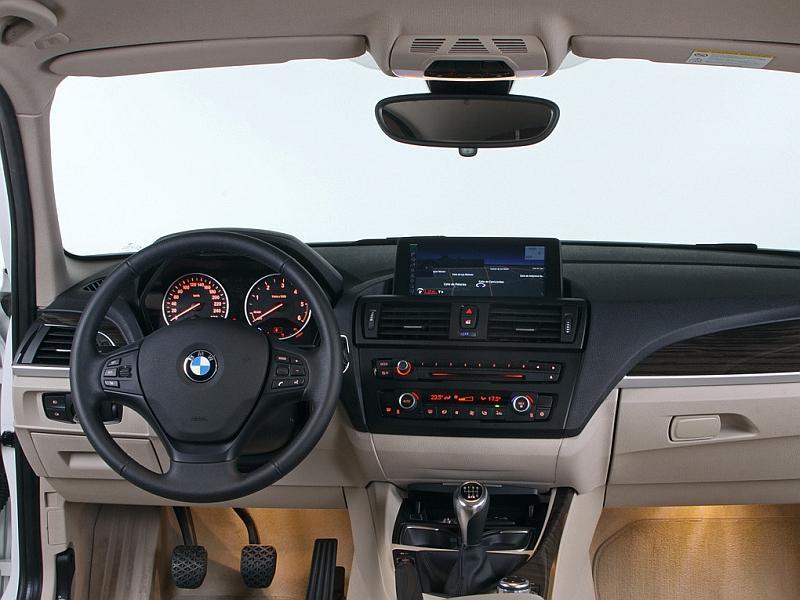 usedlejím dojmem. Palubní deska si zachovala velké mnoství tvrdých plastů, se kterými v Mnichově rozhodně neetří. Jejich zpracování je na pičkové úrovni a odpovídá prémiovosti značky. Nově si zákazník můe zvolit jeden ze dvou stylových paketů nazvaných Sport Line a Urban Line. Od toho se odvíjejí vizuální doplňky vně i uvnitř vozu. Testovaný model byl vybaven první jmenovanou volbou. Červená barva karoserie se tak promítla na klíček dálkového ovládání i na dekor palubní desky. Palubní deska se ovem nedá označit za přehnaně zdobnou jako například u větího sourozence řady 3. "Jednička" si zachovala dva přehledné budíky, dostala