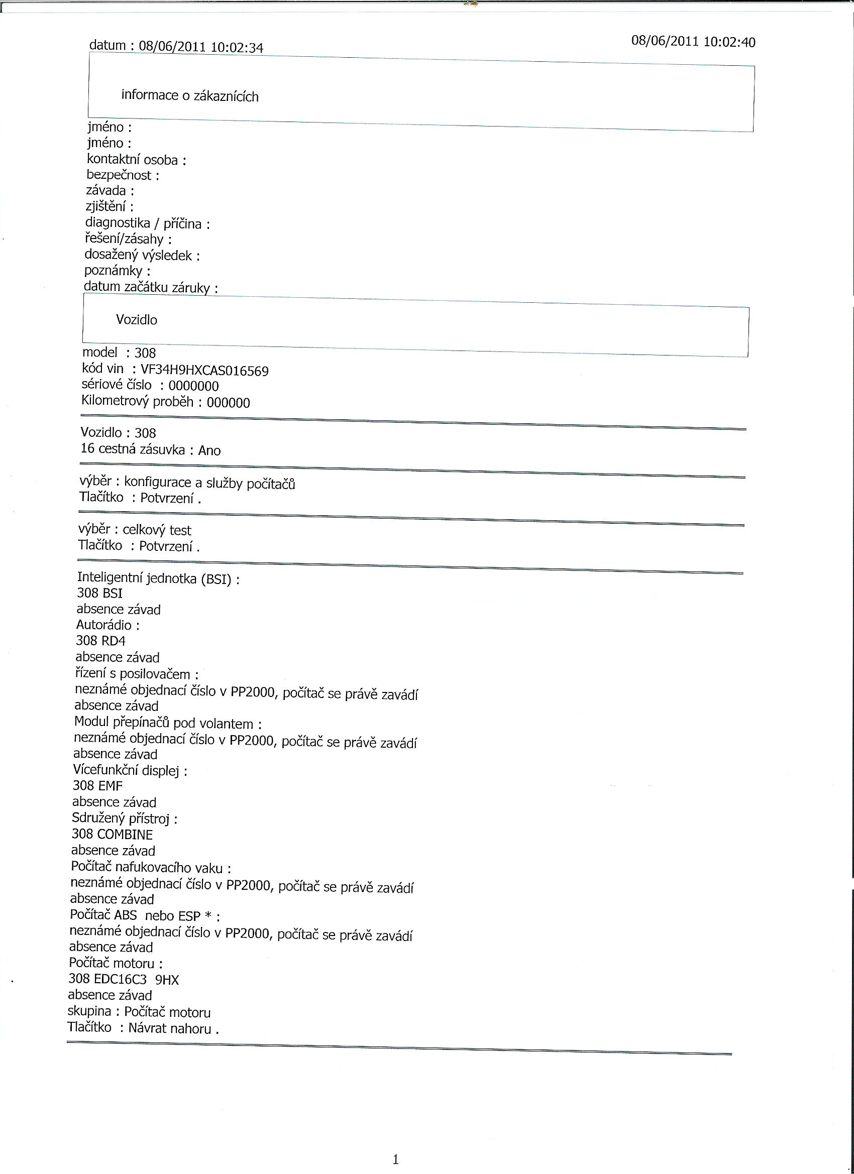Byla provedena kontrola těsnosti skříní motoru i převodovky, tlumičů, všech hydraulických okruhů i stav pryžových chráničů. Stejně tak prošel kontrolou stav výfukového potrubí, uložení kol i brzdy. Servisní kontrola neodhalila ani snížené hladiny provozních náplní. Dle vyjádření technika provádějícího kontrolu je vůz téměř jako nový. Přikládám i výpis z diagnostiky viz. fotogalerie.
