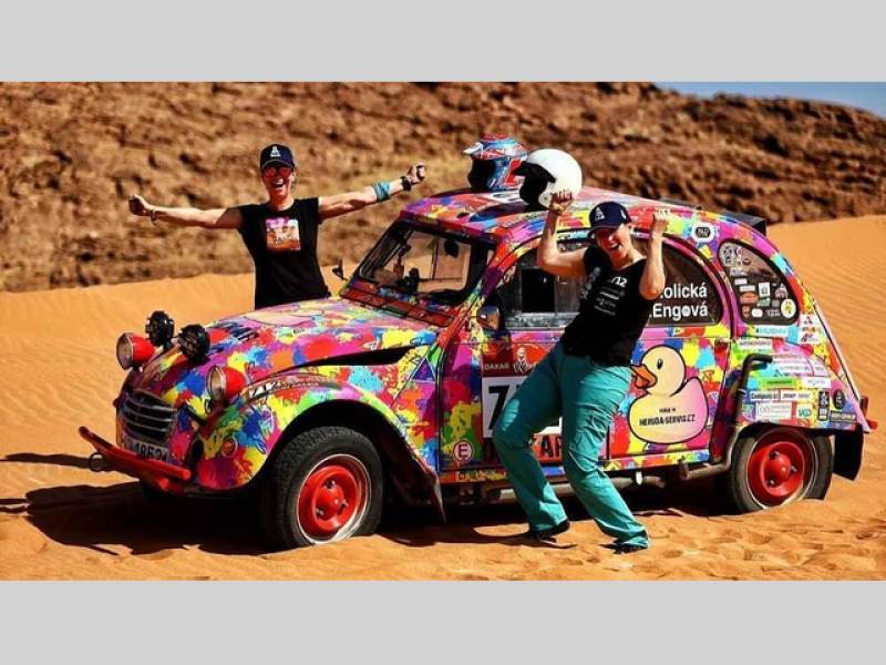 Pop-artový Citroen 2CV Barbory Holické a Lucie Engové se stal senzací závodu klasiků. Zároveň se stal jediným vozem tohoto typu, který dakarskou výzvu dotáhl po mnoha tisících ujetých kilometrů do zdárného konce.